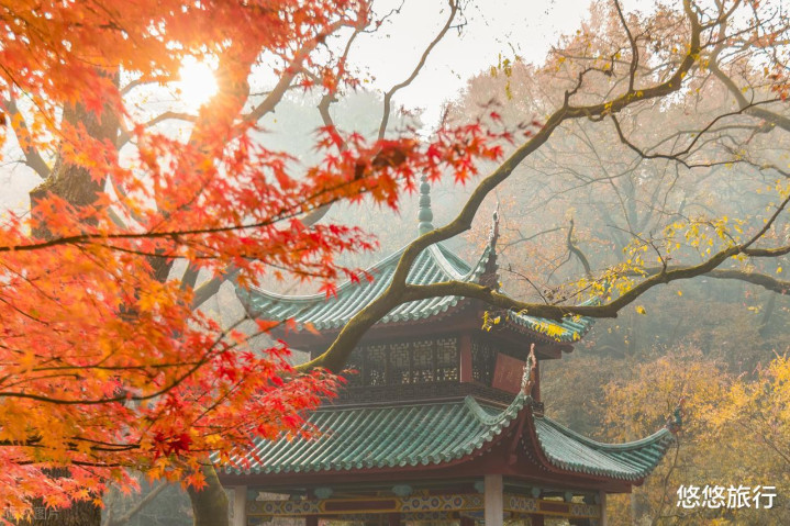 栖霞山的枫叶节期间,漫山遍野的枫叶如火如荼,搭配古寺亭台,真是金陵第一明秀山。