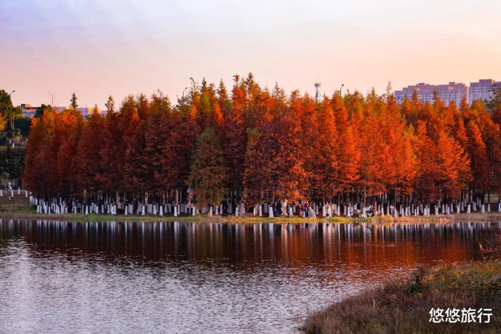 烈士公园有近百株枫香,水杉区域拍照很容易出片。巴溪洲秋日草地泛黄,树木色彩缤纷,景观桥别具一格。