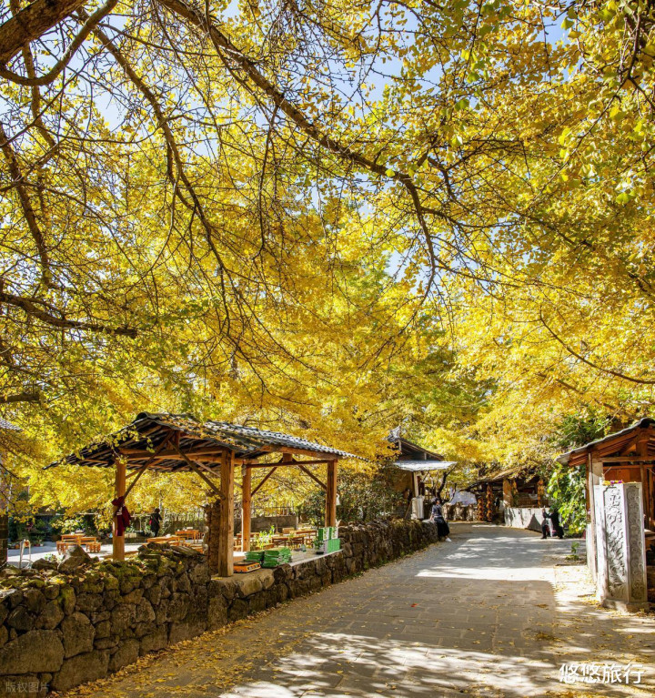 11月下旬-12月初是固东镇银杏村的黄叶巅峰期,3000株古银杏树铺满整个村落,其中千年银杏达600余株。