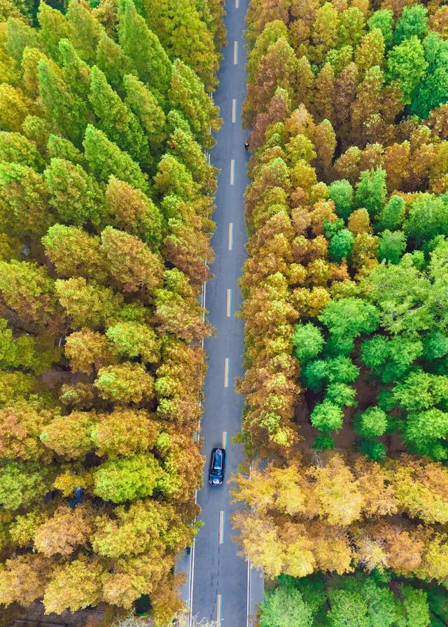 千亩水杉林像是被大自然打翻了的调色盘