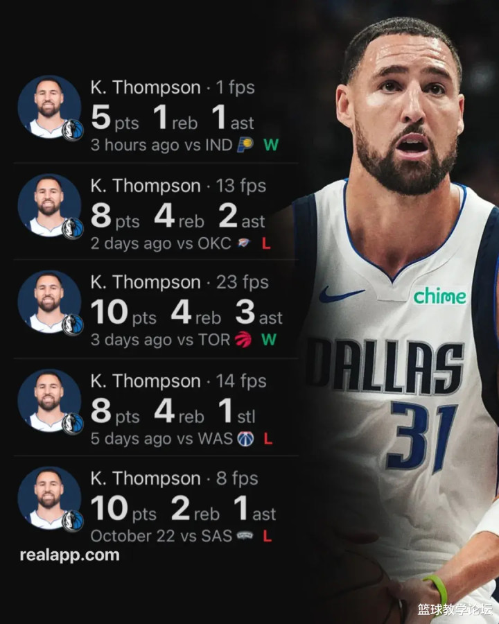 克莱-汤普森继续失准,首发出战21分41秒,投篮10中2,三分6中1,仅得5分1篮板1助攻1失误,正负值+1。上一场打雷霆,克莱投篮11中3,三分6中2,得到8分4篮板2助攻2失误。赛季至今5场比赛,克莱的三分球合计27中7!