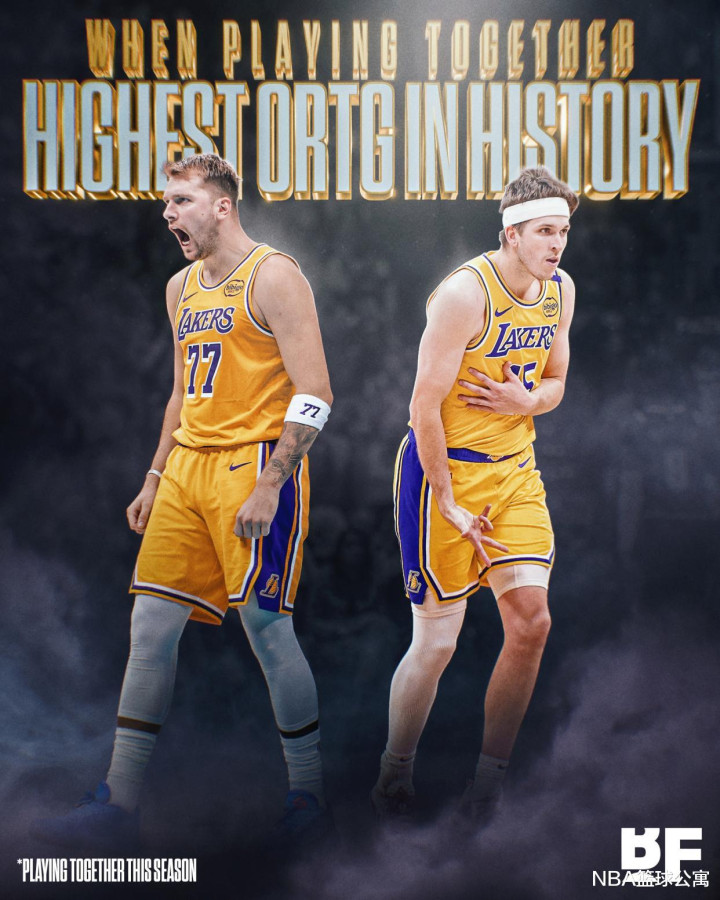 美媒Basketball Forever晒出一组有关湖人的数据。据统计,本赛季当里夫斯和东契奇同场时,湖人的进攻效率达124.6,这个数据排名NBA历史第一位。这也意味着,紫金军团双核东契奇、里夫斯创下了NBA历史第1的神迹。