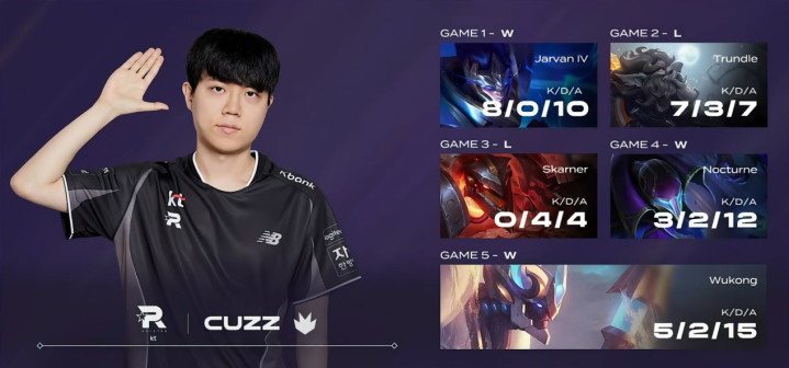 到了最后决胜局Canyon还是没有醒过来,Cuzz猴子全场节奏领先疯狂开团,小龙也全部控到,BDD和Deokdam的双C也完成对位压制,双方鏖战41分钟GEN最终还是没有绷住,全场仅仅拿下10个人头,即使硬实力再强今天也要吞下失败的苦果了。