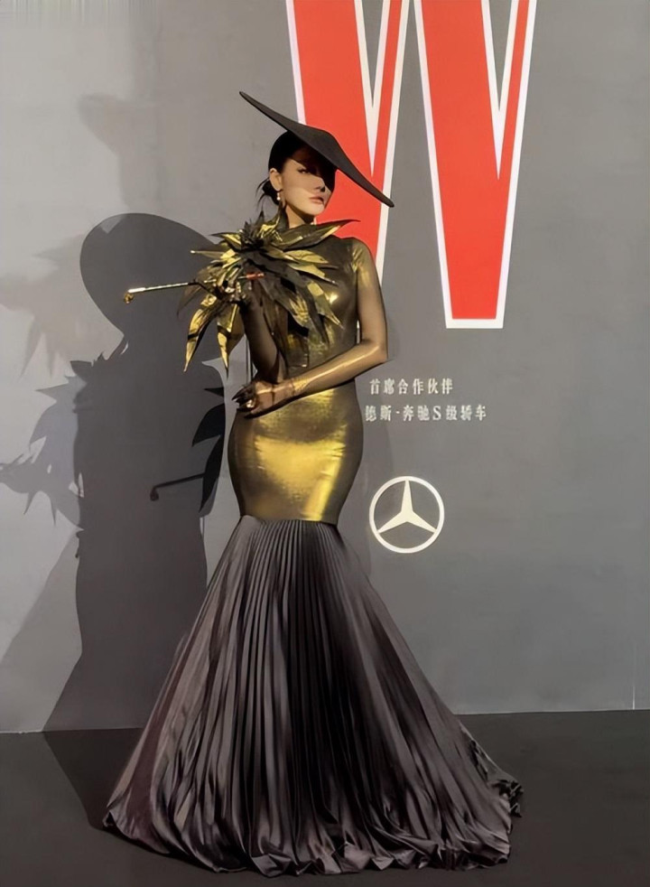 8月份的时候,迪丽热巴参加了在上海举办的W盛典,一身金色紧身礼服盛装出席,惊艳全场。