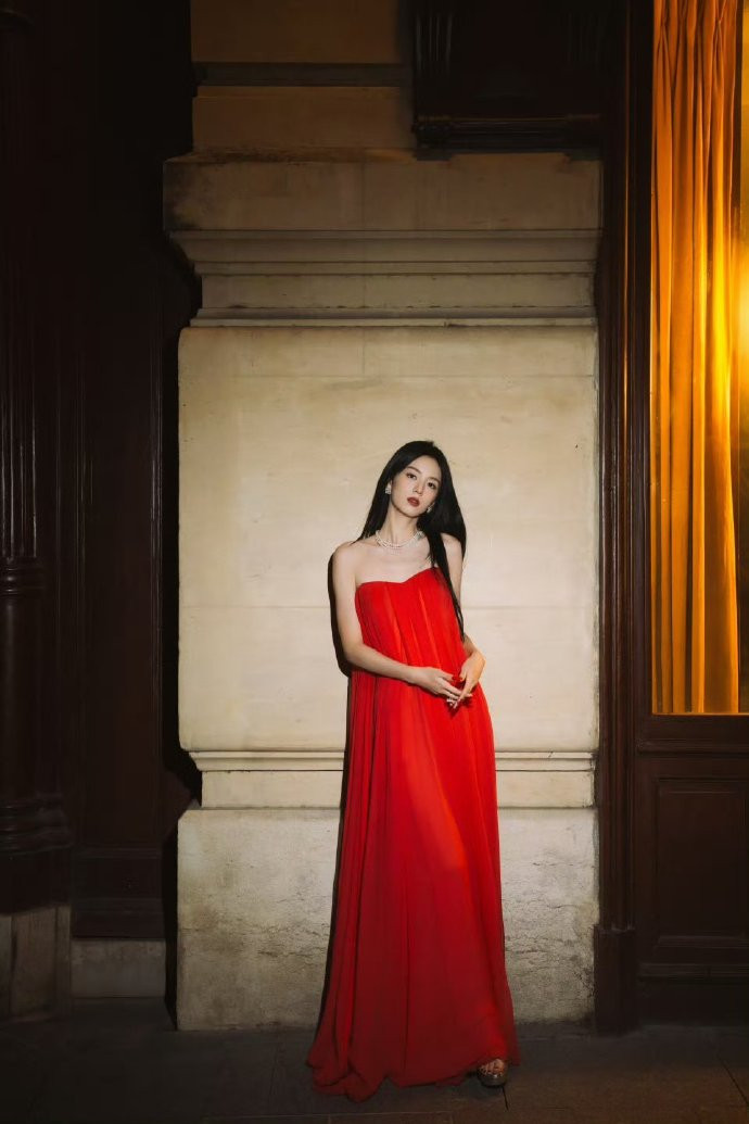 当时的她,穿着一身红色吊带裙,参加了欧莱雅的大秀,一出场就艳压群芳,没得不可方物。
