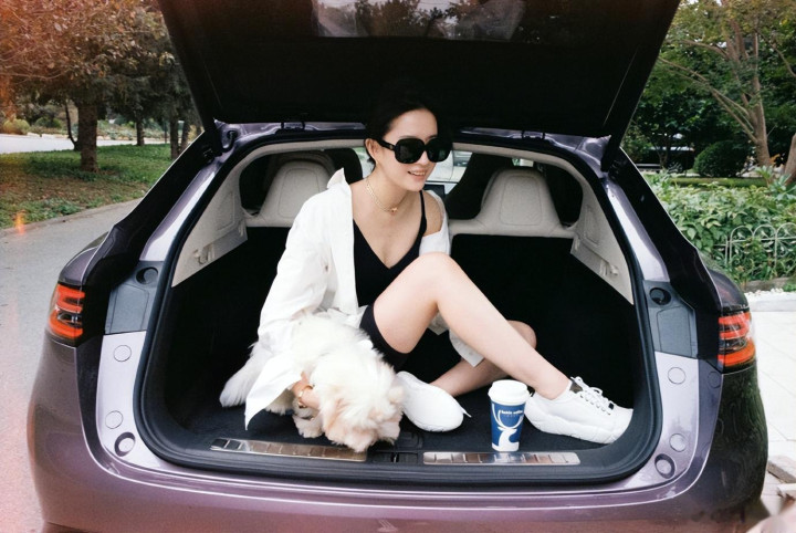 刘亦菲单手抱着狗狗站在车尾,全身出镜时,她的零赘肉身材好养眼啊。刘亦菲之前还被说过身材发福,但从这次看,她简直就是标准身材,全身上下都看不到一丁点儿赘肉。刘亦菲凹出惬意pose,细腰长腿全程抢镜,真的是美呆了。