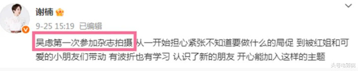 母亲谢楠分享了花絮,称“吴虑第一次参加杂志拍摄,从一开始担心紧张不知道要做什么的局促 到被红姐和可爱的小朋友们带动,有波折也有学习,认识了新的朋友,开心能加入这样的主题。”