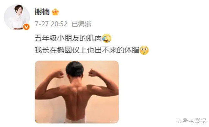 谢楠还在社交账号上晒过两个儿子的不少日常,7月还晒过11岁儿子吴滺的背部肌肉照,配文调侃:“五年级小朋友的肌肉;我长在椭圆仪上也出不来的体脂。”