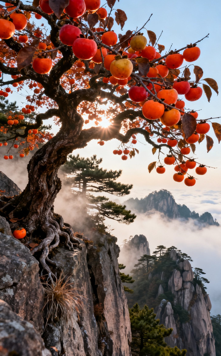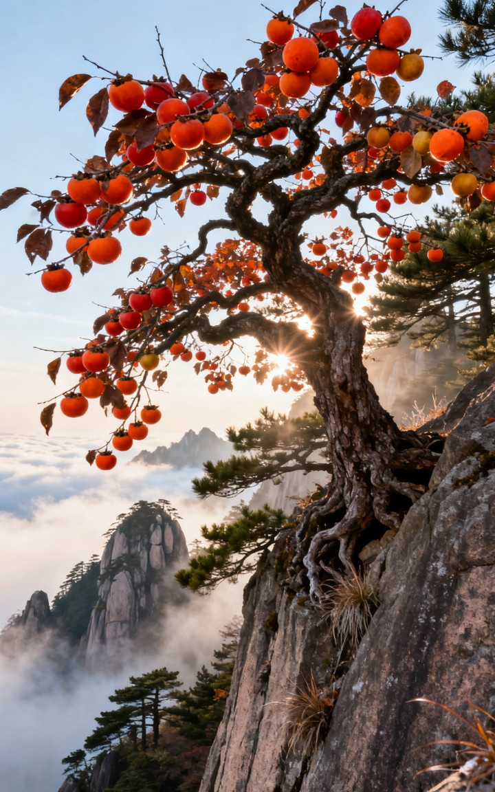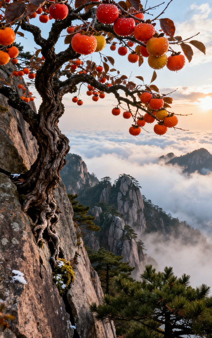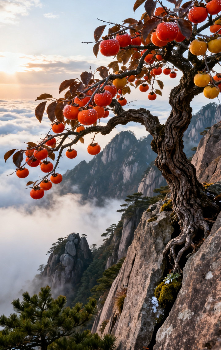 黄山之巅柿子树美景, 太漂亮了