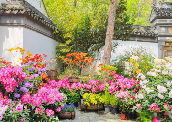 肉眼可见,整个苏州天平山充满了“色彩”,那粉的、红的、白的等花色,犹如春天的调色盘,不用远行,就能赏遍全国杜鹃精华,有着“满山开遍杜鹃花”的诗意意境。