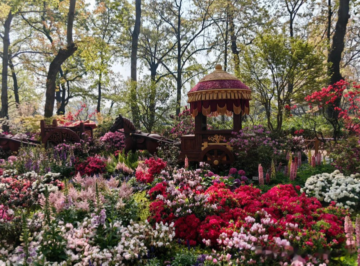 有趣的是,在花展现场,还不止于观赏杜鹃花,其相伴随的文旅活动同步上线,有着“手作体验项目”【杜鹃香囊、花艺插花、古风簪花等】,“摄影书画大赛”【杜鹃主题】,“杜鹃主题书画”【展出复刻的历代杜鹃主题书画精品】,以及“传统雅集”【书法、点茶、香道、古琴等传统文化】,等亮点,着实是直接解锁众多惊喜。