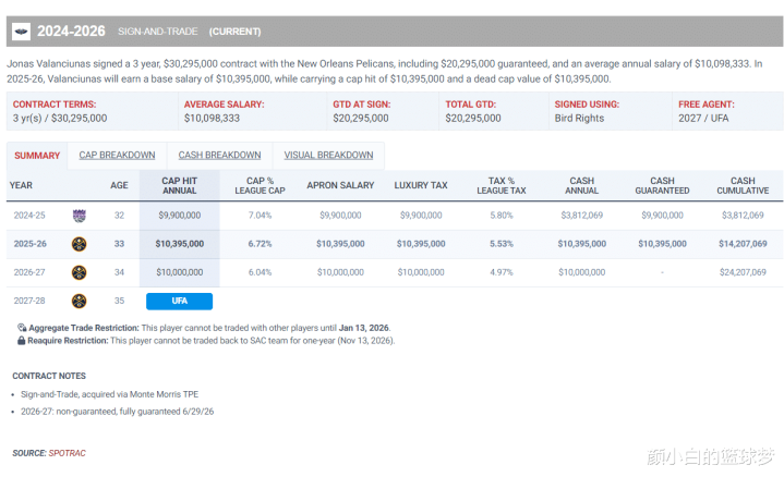 瓦兰在今夏被国王交易到掘金,他一度很接近签约欧洲球队,但掘金管理层说服他留下, 还将瓦兰26-27赛季的1000万不保障薪水转为全额保障,掘金管理层将瓦兰视为约基奇最好的替补。